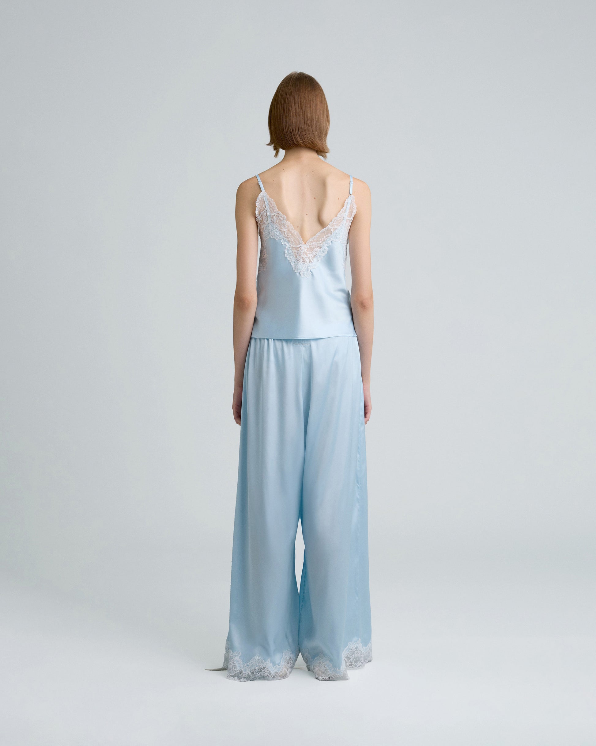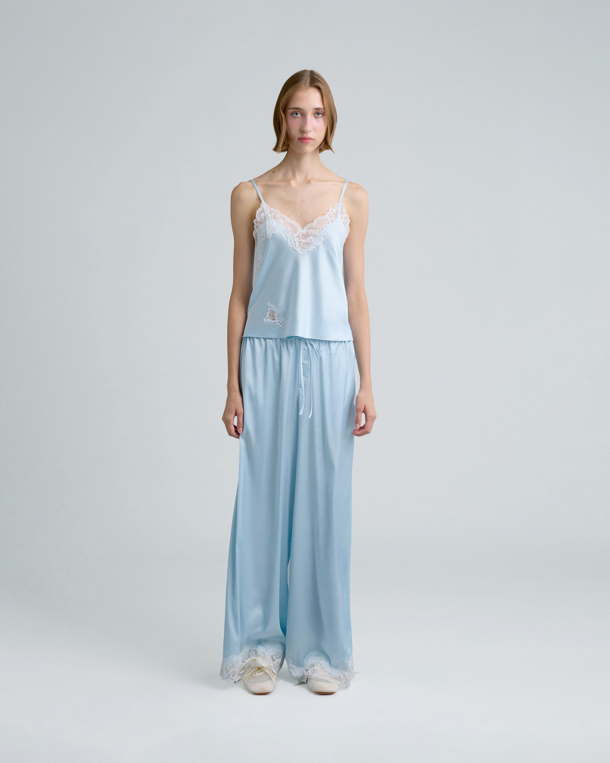 C LACE TRIMMED SATIN PANTS (BLUE)