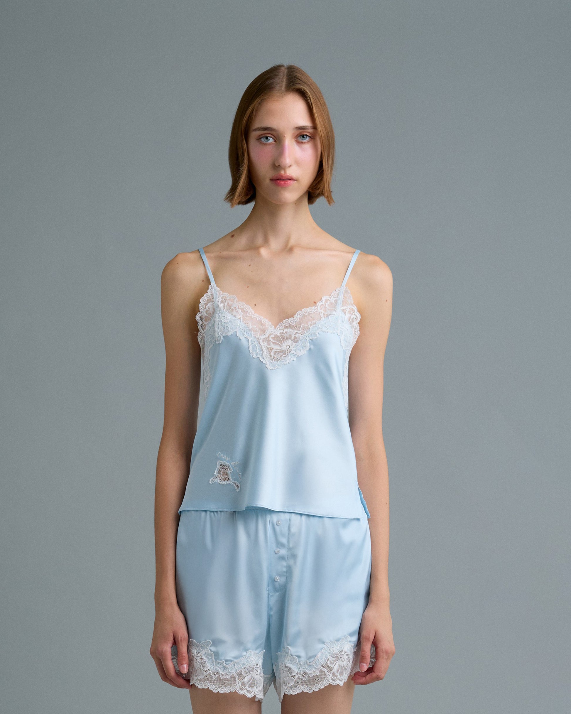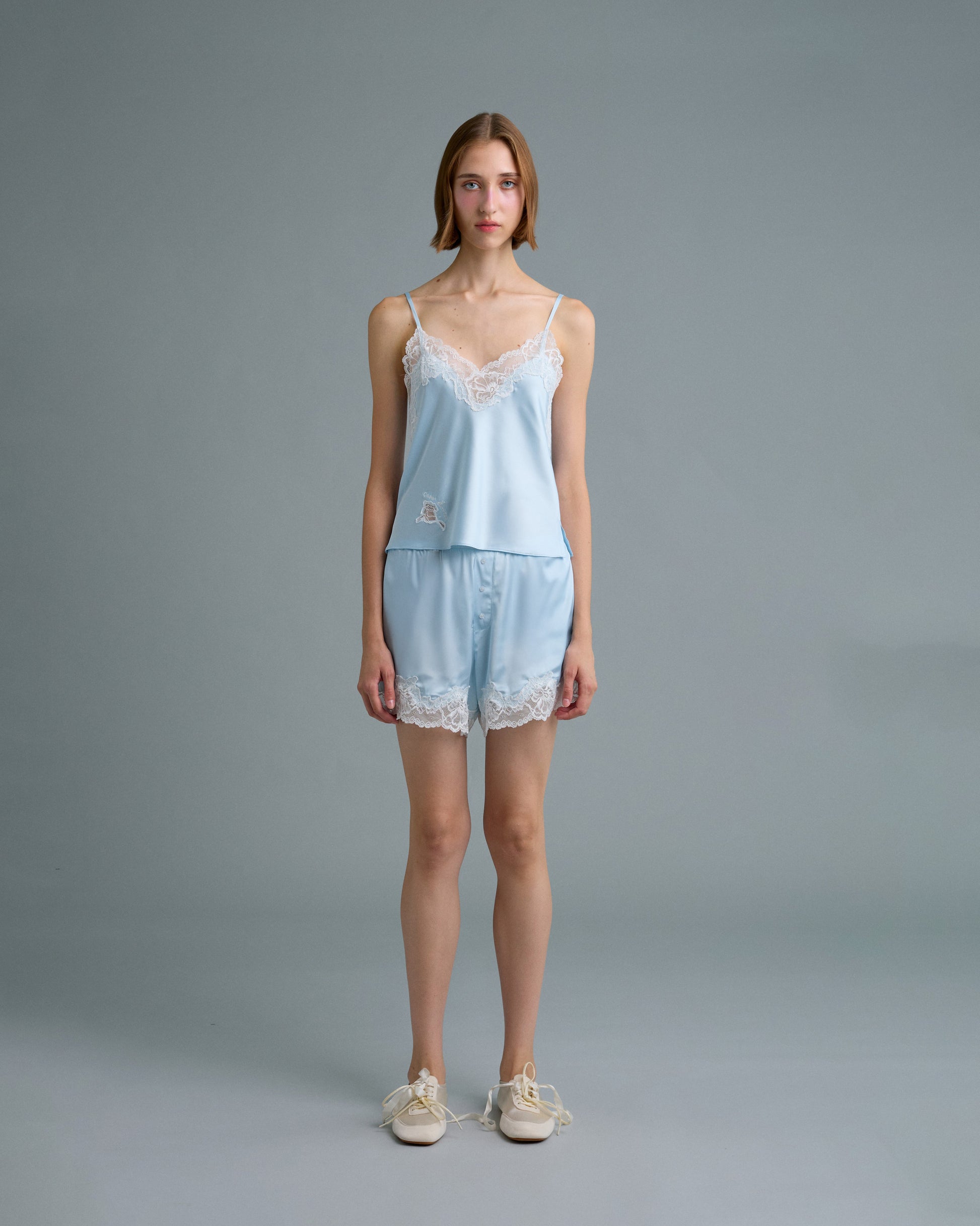 C LACE TRIMMED SATIN CAMISOLE (ฺBLUE)