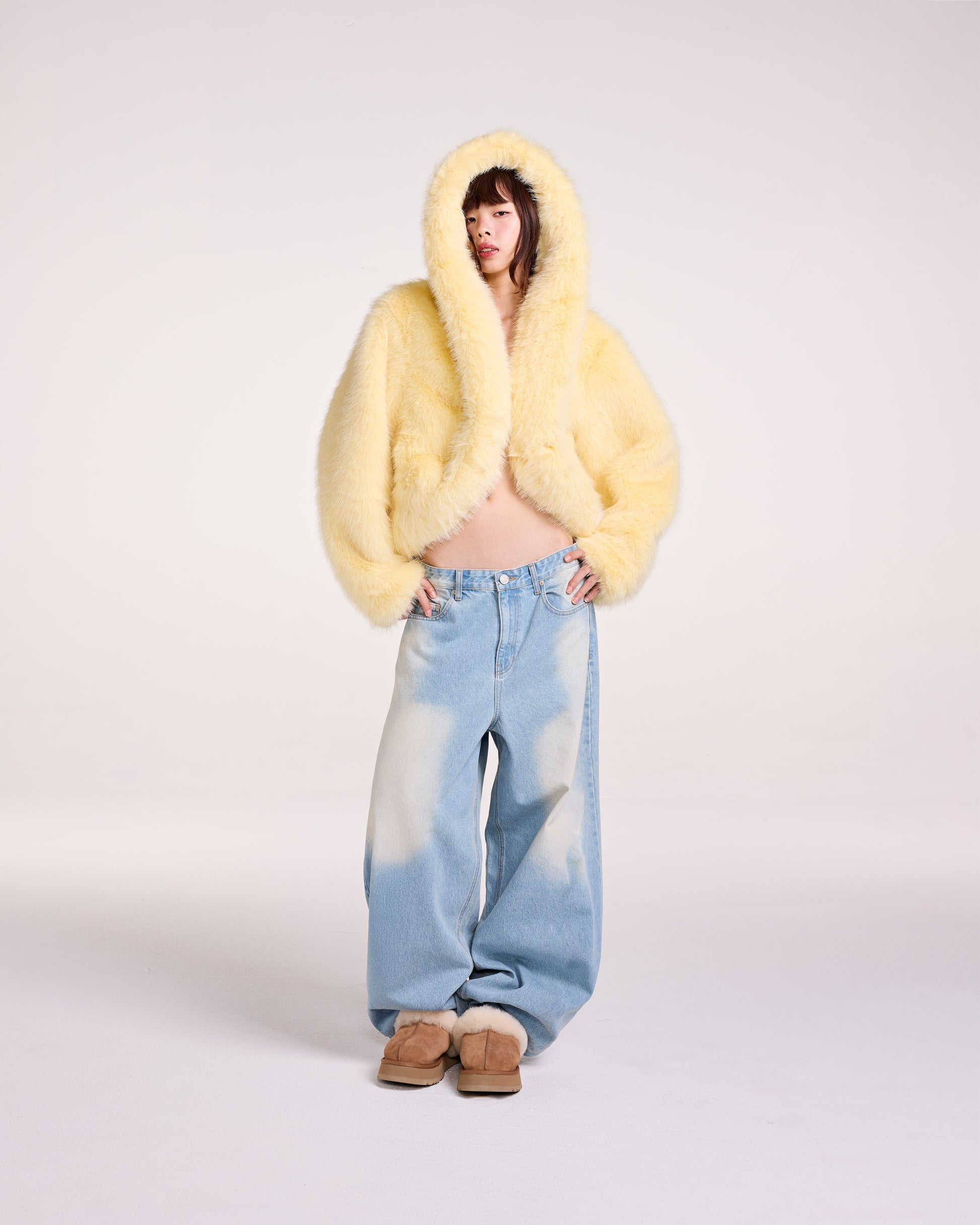 HOODIE FAUX FUR JACKET (YELLOW)