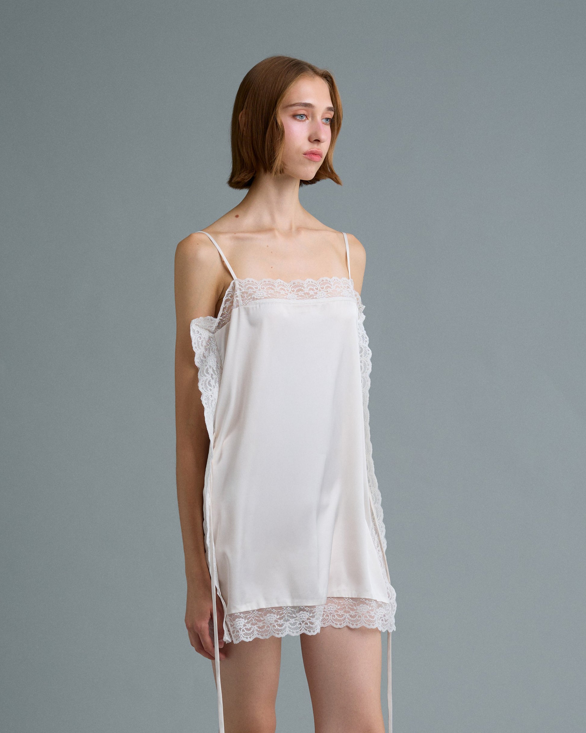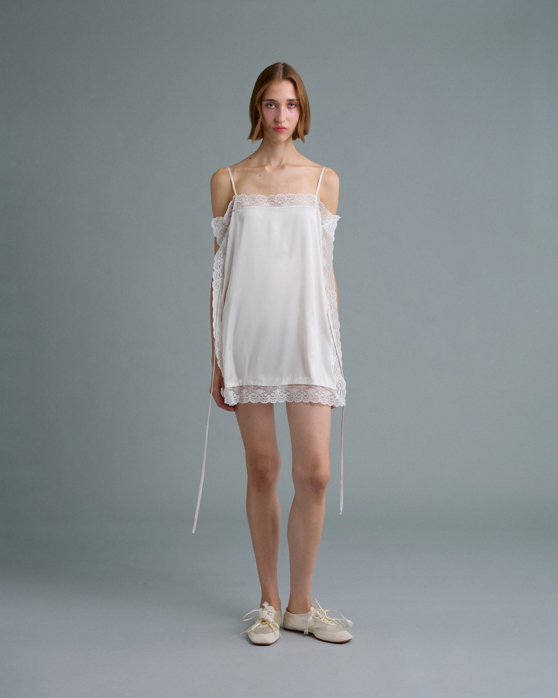 SQUARE SATIN MINI DRESS (OFF WHITE)